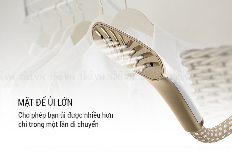 Đặc biệt, mặt đế ủi có thiết kế với kích thước lớn hơn 25%, cho phép bạn ủi được nhiều hơn chỉ trong một lần di chuyển. Nhờ đó mà thời gian là áo quần được rút ngắn, bạn có thể tranh thủ làm được nhiều việc khác.