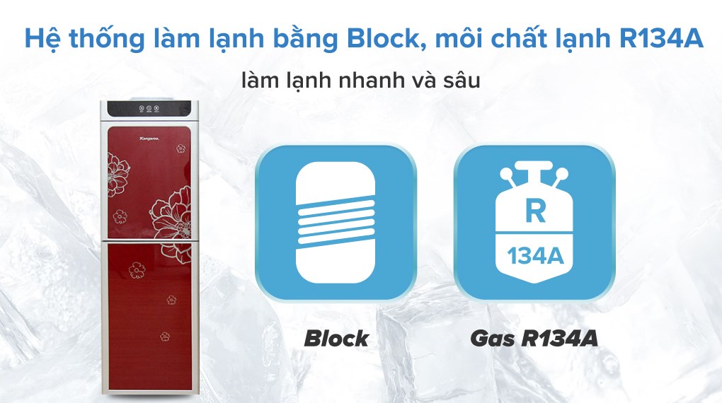 Cây nước nóng lạnh Kangaroo KG40N (hay còn gọi mà máy làm nóng lạnh nước uống) loại liên doanh, làm lạnh bàng Block nên có độ bền cao và lạnh sâu. Rất tiện dụng với hai vòi nóng lạnh riêng biệt. Sản phẩm có màu đỏ sậm, hoa văn sang trọng, đặc biệt có cánh tủ ngăn bụi bẩn khi không sử dụng. Ngoài ra còn có khoang chứa làm lạnh, sử dụng nguồn nước từ bình úp.