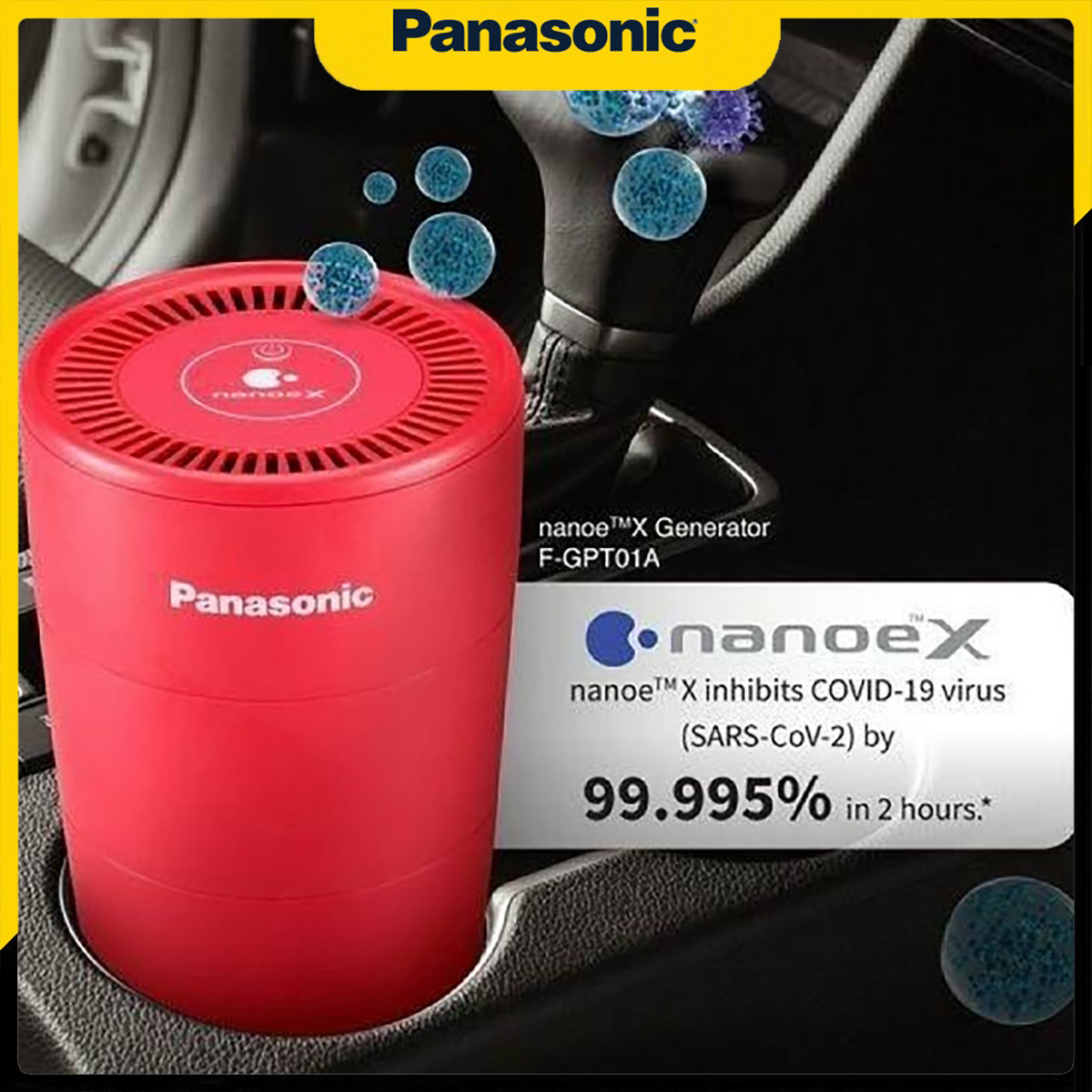 Máy khử mùi ô tô F-GPT01A-R màu đỏ sở hữu công nghệ độc quyền Nanoe X từ thương hiệu Panasonic. Đây là công nghệ có khả năng lọc sạch bụi mịn PM2.5, khử mùi và diệt vi khuẩn với hiệu suất cao, phù hợp với người bệnh hen suyễn, hô hấp, say xe, loại bỏ các tác nhân gây dị ứng từ lông của chó mèo, phấn hoa, nấm mốc…Ngoài ra, sản phẩm còn lọc sạch các hạt Amiăng có thể gây ung thư biểu mô. Nanoe-X ức chế hoạt động covid – 19 mới bám dính hiệu quả >99%.