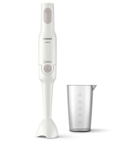 Máy xay sinh tố cầm tay thiết kế đơn giản, tiện dụng phù hợp với gia đình có trẻ nhỏ đang trong giai đoạn ăn dặm. Philips HR2531 đi kèm cốc xay bằng nhựa có chia dung tích giúp bạn xay đúng được khẩu phần ăn của trẻ em. Hoặc bạn có thể sử dụng xay trực tiếp trong nồi, xoong.
