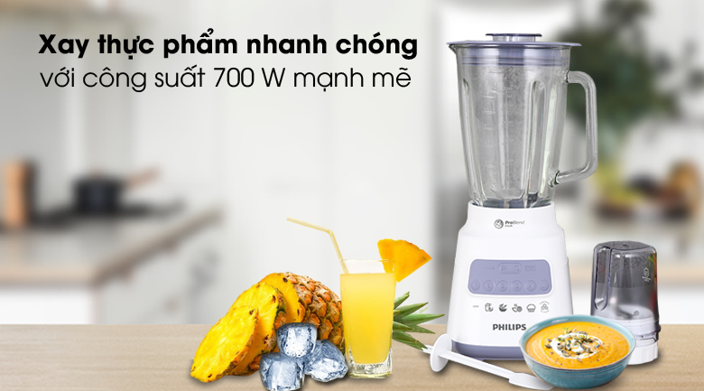 Nhờ được trang bị công nghệ ProBlend Crush tiên tiến, kết hợp với công suất mạnh mẽ 700W, máy xay đa năng HR2221 cho khả năng xay đá công suất cao nhanh và nhuyễn mịn, phục vụ thức uống mùa hè.