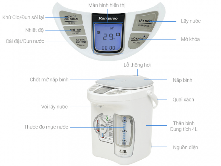 Bình Thủy điện Kangaroo KG4K1 với thiết kế mới mang phong cách cổ điển, sang trọng, cùng nhiều tính năng thông minh, tiện dụng sẽ rất phù hợp với các gia...