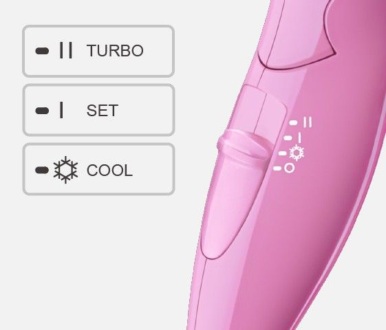 Bạn có thể chọn luồng khí và nhiệt độ với chế độ TURBO (II) để sấy khô nhanh, SET (I) để tạo kiểu tóc, và COOL để giữ kiểu tóc lâu hơn.