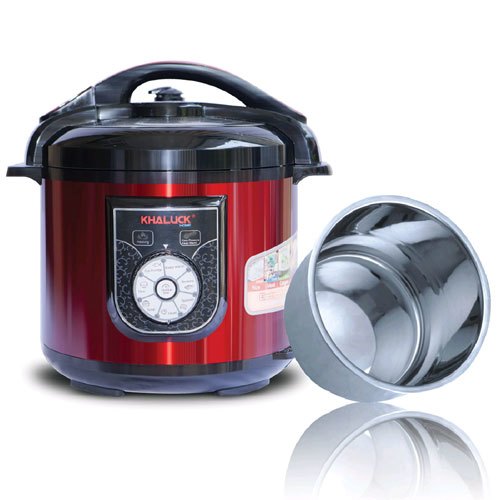 - Nồi áp suất Khaluck KL-788S giúp bạn tiết kiệm thời gian nấu đồng thời đảm bảo mùi vị và dinh dưỡng của thức ăn. Bạn chỉ mất 15 phút để hầm xương thay vì 2 giờ đồng hồ với nồi nấu với bếp gas thông thường. Dung tích nồi lớn với 6 lít và tích hợp nhiều chức năng nấu tự động như nấu cơm nấu canh, cháo, hầm… đây sẽ là trợ thủ đắt lực của bạn trong việc chế biến các món ăn dinh dưỡng cho gia đình. Bên cạnh đó, lòng nồi làm từ chất liệu inox an toàn cho sức khỏe và có độ bền cao. Nồi áp suất điện Khaluck Home KL-788S thiết kế sang trọng với gam màu đỏ đen và họa tiết hoa văn trang trí đơn giản làm nổi bật không gian bếp. Với bảng điều khiển dể dàng điều khiển, chức năng hẹn giờ nấu thông minh.