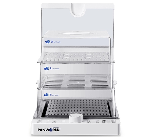 Uu điểm lớn nhất của chiếc Máy hấp điện PANWORLD PW-2322 chính là có tới 3 tầng hấp với dung tích lên tới 18,8 lít nhưng lại vô cùng gọn gàng, không tốn nhiều diện tích của căn bếp. Chị em có thể thoải mái hấp được nhiều món cùng một lúc.