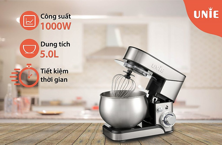 Công suất cao 1000W, tô trộn dung tích lớn 5 lít, phụ kiện thép không gỉ siêu bền và các tính năng thông minh tắt/mở an toàn giúp cho việc chuẩn bị món ngon trở nên dễ dàng hơn bao giờ hết. Là trợ thủ đắc lực để tạo ra những món bánh thơm ngon, dù bạn là đầu bếp chuyên nghiệp hay chỉ đơn giản là người yêu thích làm bánh. Ngoài ra công suất lớn còn tiếp kiệm nhiều thời gian khi chế biến thực phẩm.