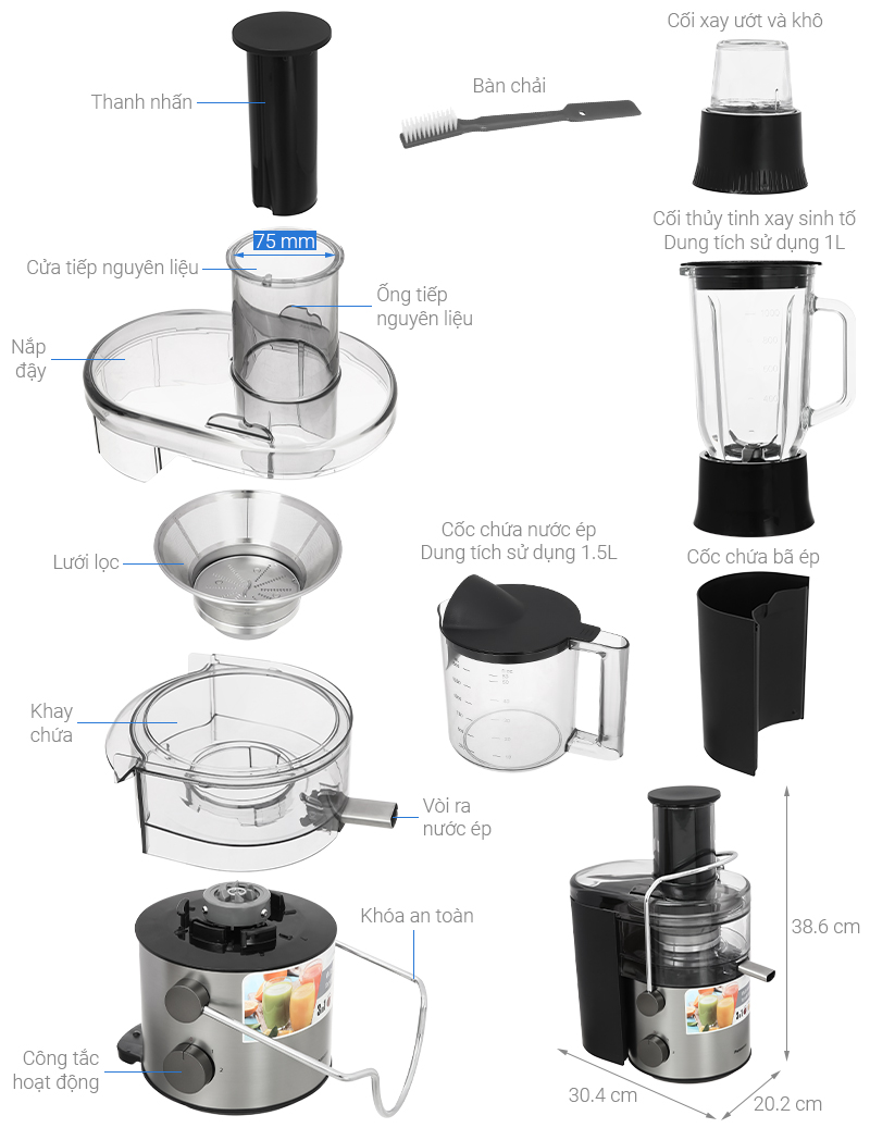 Tích hợp đầy đủ 3 chức năng: xay sinh tố, ép trái cây, xay hạt chỉ trong một thiết bị duy nhất,...