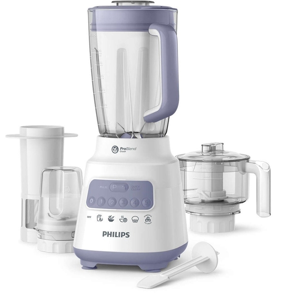 Máy xay sinh tố Philips HR2223/00 có thiết kế gọn gàng, hiện đại với tông màu trắng pha tím trẻ trung, phù hợp với...