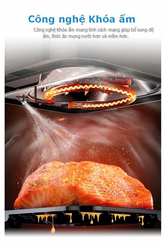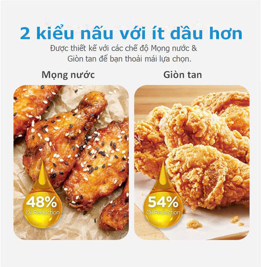 🔅 Nồi chiên không dầu đặc biệt bởi công nghệ hơi nước được áp dụng để hơi nước được giữ lại giúp thức ăn không bị khô, mềm ngon