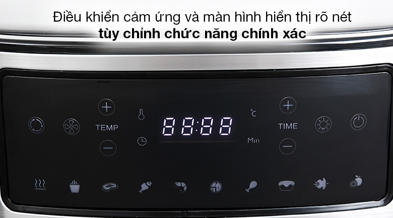 Các chức năng gồm chiên không dầu, khoai tây, thịt, cá, tôm, pizza, đùi gà, bánh mỳ, gà nướng nguyên con, sấy khô.
