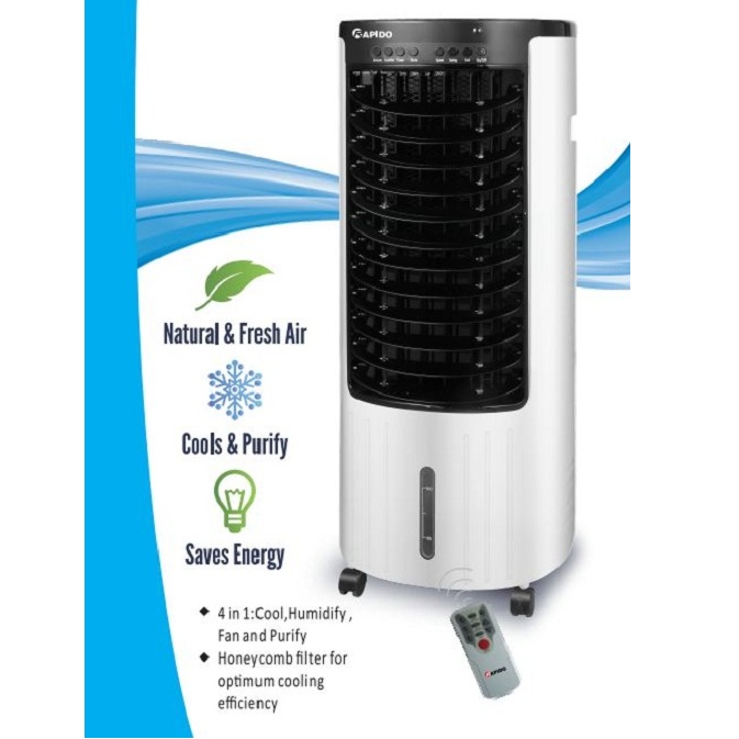Quạt điều hòa không khí Rapido với thiết kế hiện đại, chức năng vượt trội mang lại sự tiện nghi cho gia đình bạn. Sự kết hợp hài hòa giữa 4 chức năng làm lạnh, giữ ẩm, quạt, làm sạch giúp tối ưu chức năng cần có cho 1 chiếc quạt điều hòa.