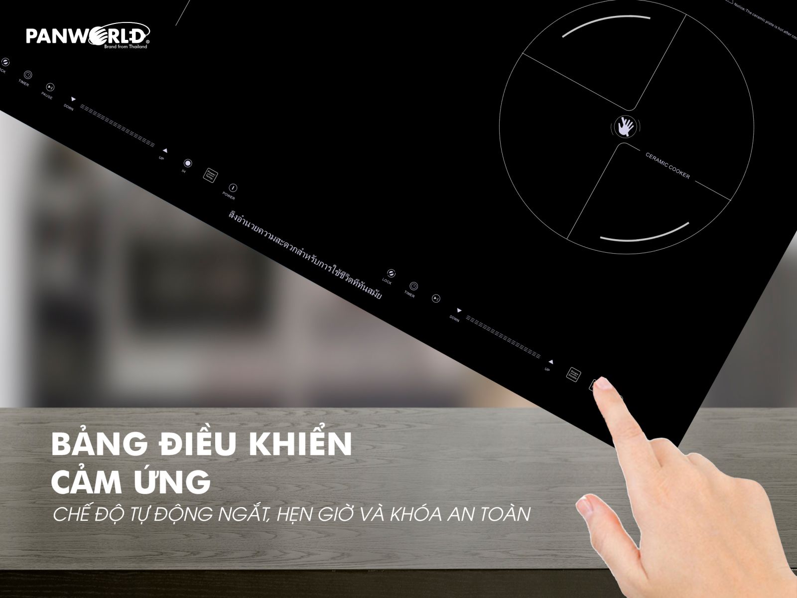 Người dùng có thể thiết lập nhiệt độ, sử dụng bếp từ đôi dễ dàng với bảng điều khiển cảm ứng với thanh trượt điều chỉnh nhiệt độ sang trong. Ngoài ra, Bếp đôi từ - hồng ngoại Panworld PW-1924 còn tích hợp chế độ tự động ngắt bếp, hẹn giờ cùng khóa an toàn giúp hạn chế tối đa sự cố khi sử dụng.