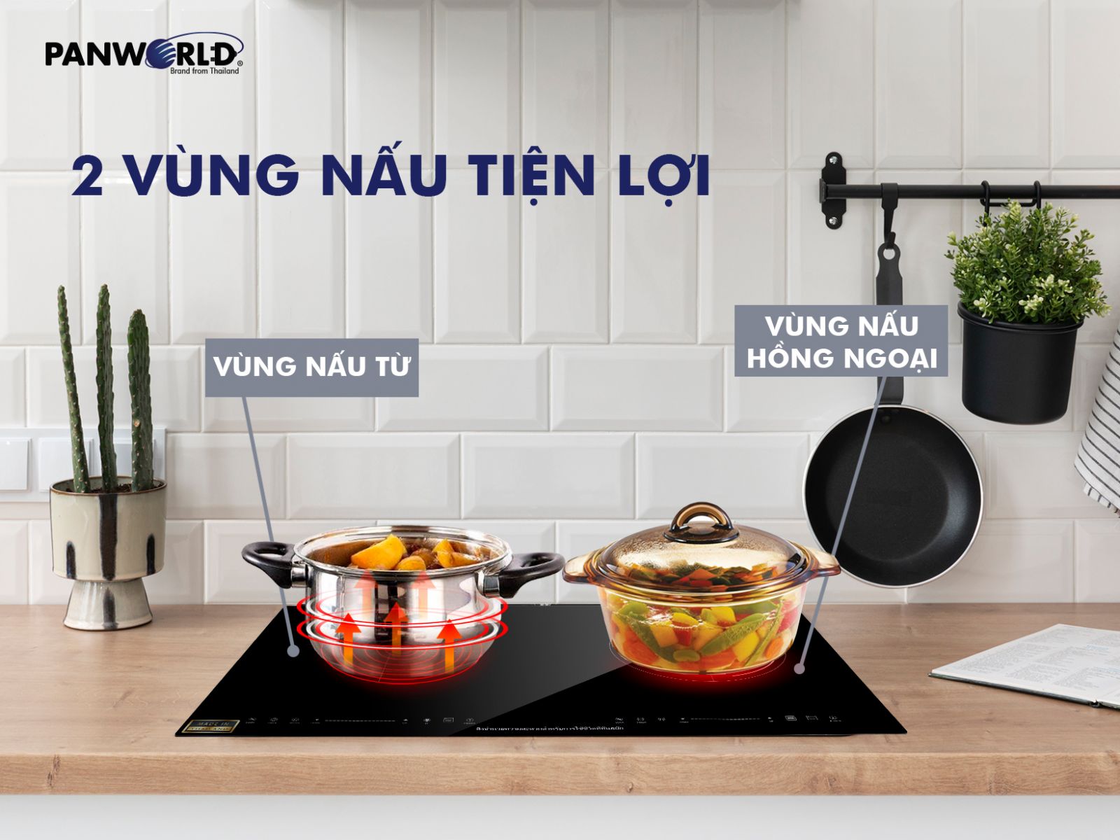 Thiết kế với 2 vùng nấu giúp người dùng nấu 2 món ăn cùng lúc