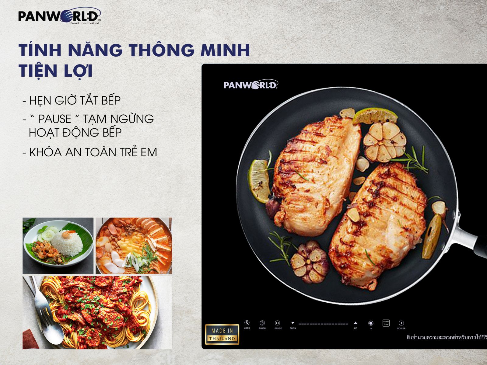 Chức năng "Pause" khi được kích hoạt sẽ tạm ngừng hoạt. Chỉ cần chạm lại 1 lần nữa để bếp trở lại chương trình đang nấu.
