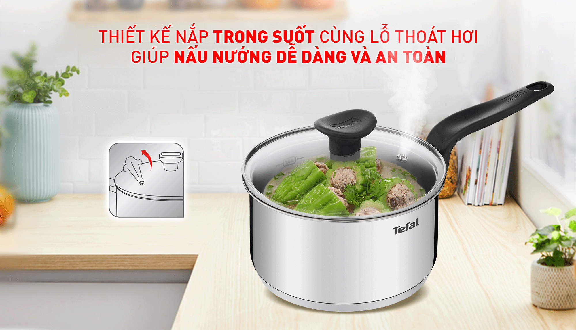 Bộ nồi inox Tefal Primary 16/20/24cm (E3086S74) có thiết kế mới lạ, hiện đại với nắp nồi trong suốt dễ dàng nhìn thấy thức ăn bên trong nồi, giúp bạn dễ dàng quan sát thực phẩm bên trong đang chín tới mức độ như thế nào.