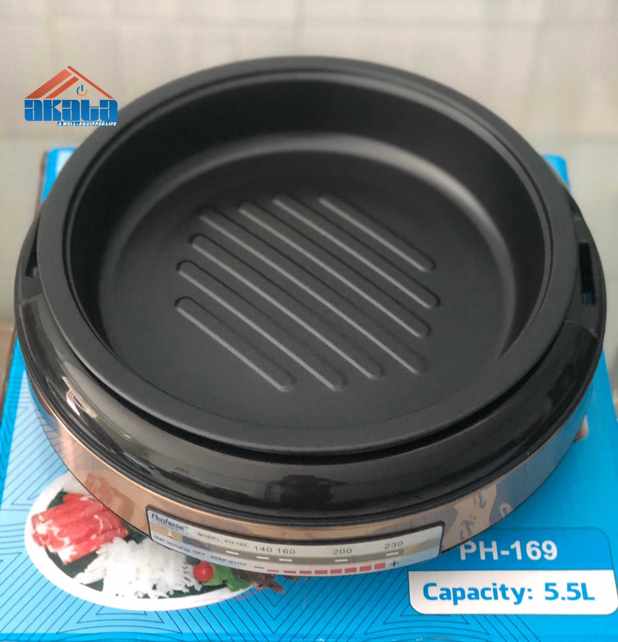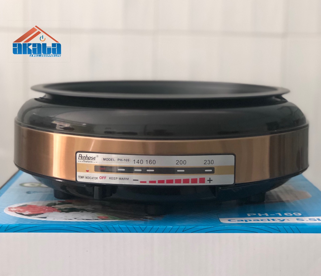 Nồi lẩu nướng điện Penhose PH-169 thiết kế theo công nghệ hiện đại kiểm soát điện năng tiêu thụ tốt hơn, công suất 1600W làm nóng nhanh chóng, các Rơle và cảm biến nhiệt giúp nồi lẩu nướng tỏa nhiệt đều hơn, ít tổn thất nhiệt lượng dư thừa hơn rất nhiều. Nồi lẩu nướng điện này thiết kế núm vặn điều khiển điện tử với các mức nhiệt khác nhau, bạn có thể tùy chỉnh theo nhu cầu của mình, thang nhiệt với các mức từ 1 đến 8 với nhiệt độ khoảng 80 – 230 độ C.