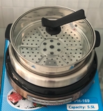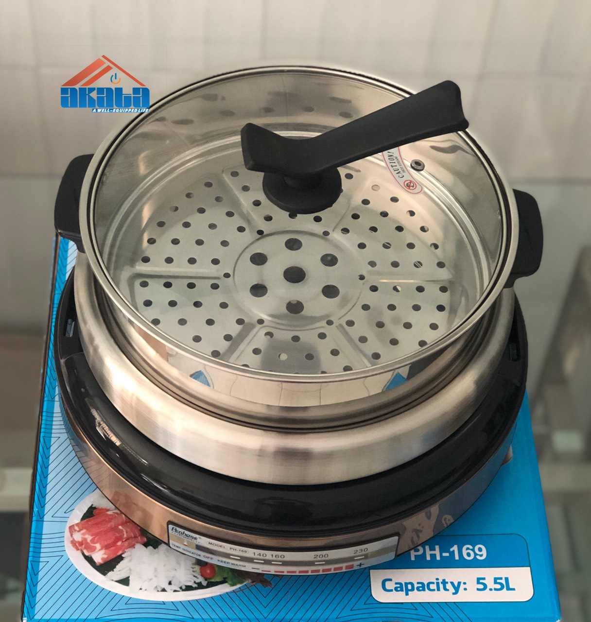 Nồi lẩu điện đa năng Penhose PH-169 sở hữu dung tích lớn lên đến 5.5L, có thể đáp ứng được các bữa ăn cuối tuần hay thậm chí tổ chức tiệc, nồi có thể sử dụng vào nhiều mục đích khác nhau ngoài nấu lẩu như chiên, xào thức ăn, sử dụng để hấp, nướng,… rất dễ dàng với khay bằng inox 304 tráng men chống dính siêu bền, chịu được nhiệt độ cao. Nồi lẩu điện đa năng này sử dụng hợp kim nhôm dày gia tăng độ bền cho nồi, tăng khả năng dẫn nhiệt và giữ nhiệt hơn so với các sản phẩm cùng loại, lòng nồi được phủ lớp chống dính bám chặt vào nồi chống trầy xước tốt hơn, khả năng chống bám dính cũng được cải thiện gần gấp 2 so với những lớp chống dính bình thường