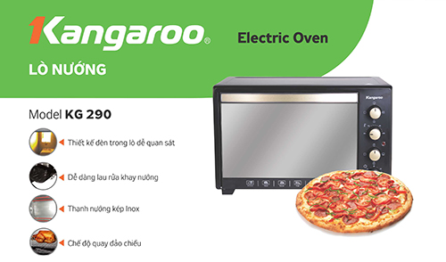 Lò nướng Kangaroo sử dụng quạt đối lưu khi nóng giúp thức ăn chín đều và nhanh hơn giữ nguyên hương vị của thực phẩm và các vitamin. Sử dụng lò nướng rất an toàn, sạch sẽ không sinh ra khói nên tốt cho sức khỏe. Lò nướng KG290 là sự lựa chọn hoàn hảo dành cho gia đình bạn.