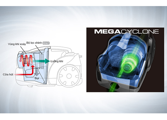 Công nghệ gió xoáy cực đại của máy kết hợp với công suất mạnh mẽ 1600W tạo luồng khí xoáy cực đại phân tách bụi vào khoang chứa và duy trì lực hút bền bỉ. Máy hút bụi được trang bị hộp chứa bụi dung tích 2.2 lít, sử dụng tốt cho gia đình, văn phòng... không bị gián đoạn để vệ sinh trong quá trình vận hành