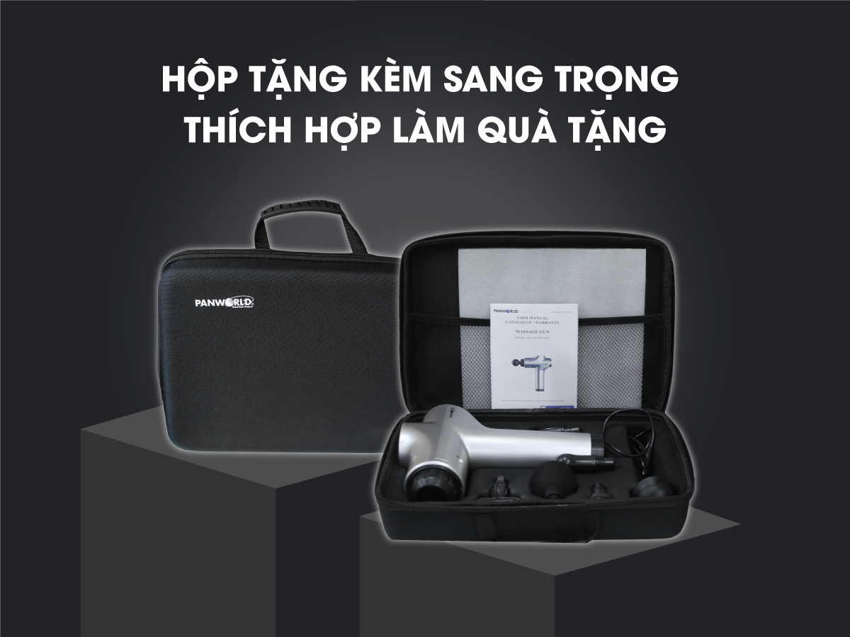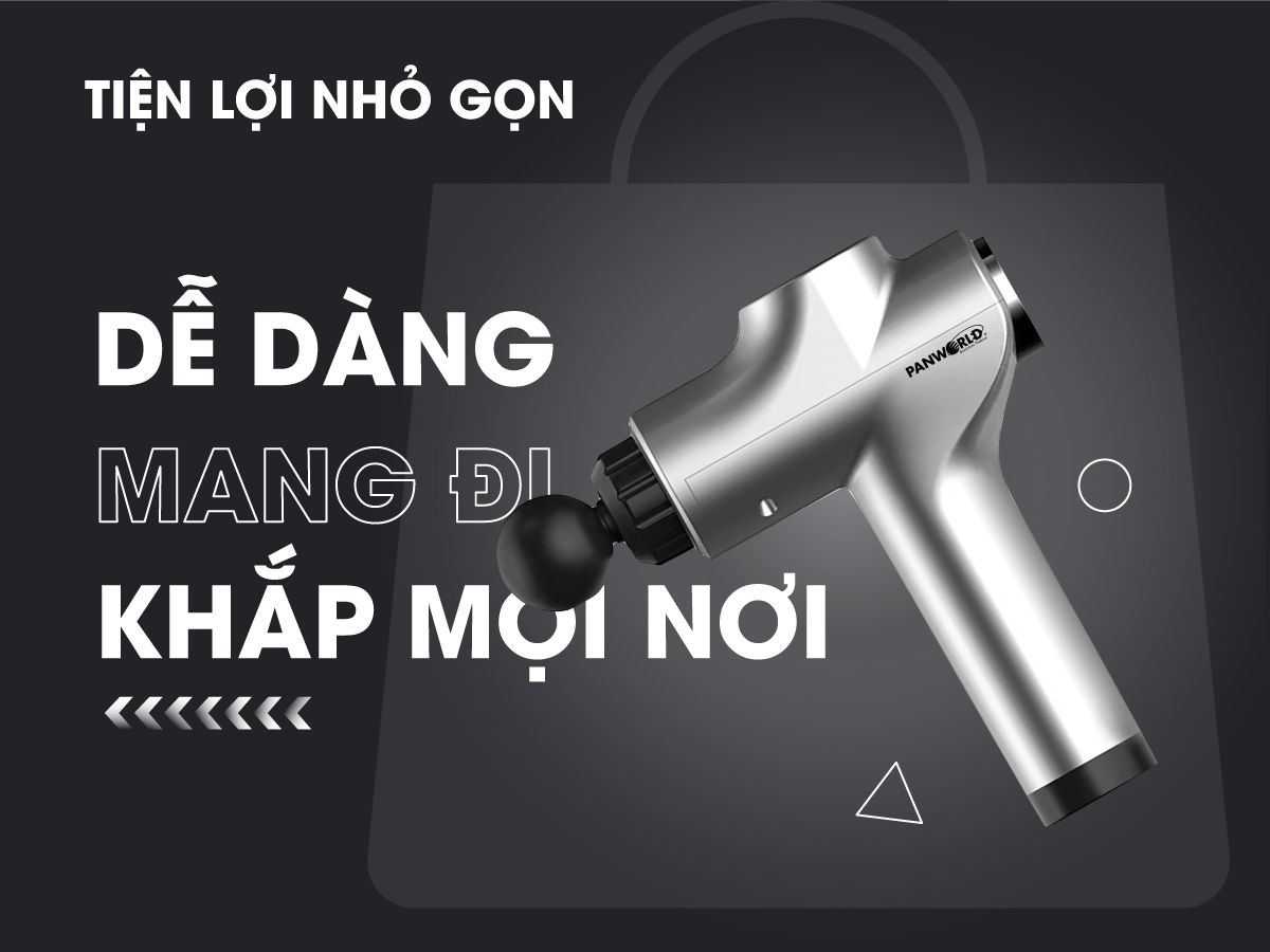 Máy Massage Cầm Tay PanWorld PW-3024 là một trong những sản phẩm có công dụng giúp phục hồi cơ bắp nhanh chóng nhờ vào tác động lực rung hoặc ấn xuống của súng mát xa. Những dòng sản phẩm này có kiểu dáng như máy khoan được thiết kế nhỏ gọn vừa với tay cầm và có thể đem theo bên mình bất cứ lúc nào.