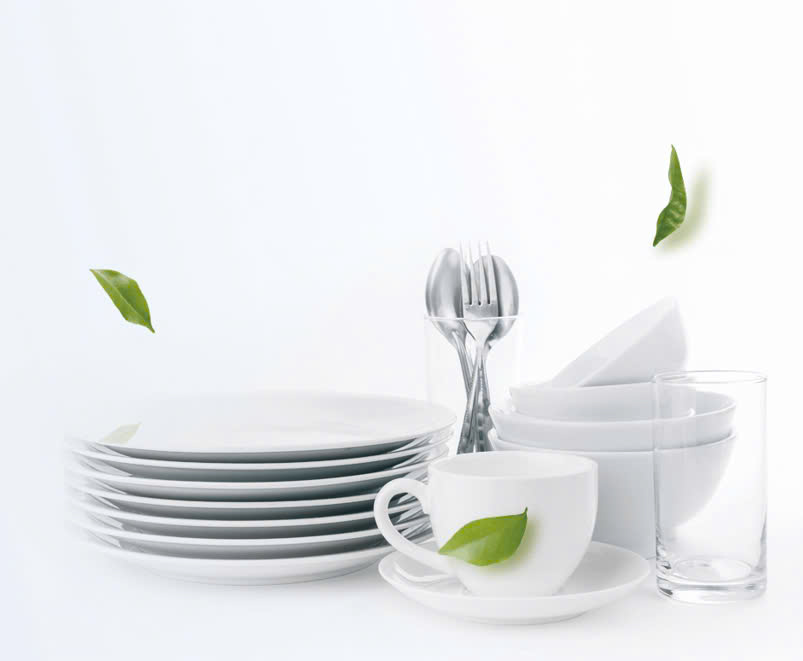 Bát đĩa được làm sạch mà không tốn nhiều công sức và tiêu thụ nước. Tiết kiệm 90% +tiêu thụ nước