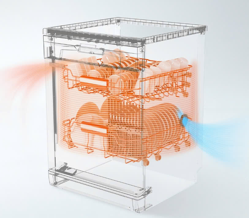 Được trang bị công nghệ sấy nóng hỗ trợ quạt để cung cấp luồng không khí liên tục lưu thông khắp lồng giặt trong quá trình sấy, máy rửa chén của chúng tôi có thể loại bỏ các giọt nước và xả độ ẩm, làm khô hoàn hảo ngay cả đối với đồ nhựa.