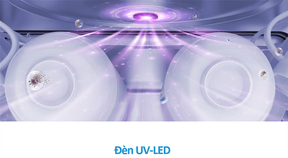 Đèn LED UV, được lắp đặt trong khoang chứa, duy trì hiệu quả chống vi khuẩn tốt trong thời gian sấy.