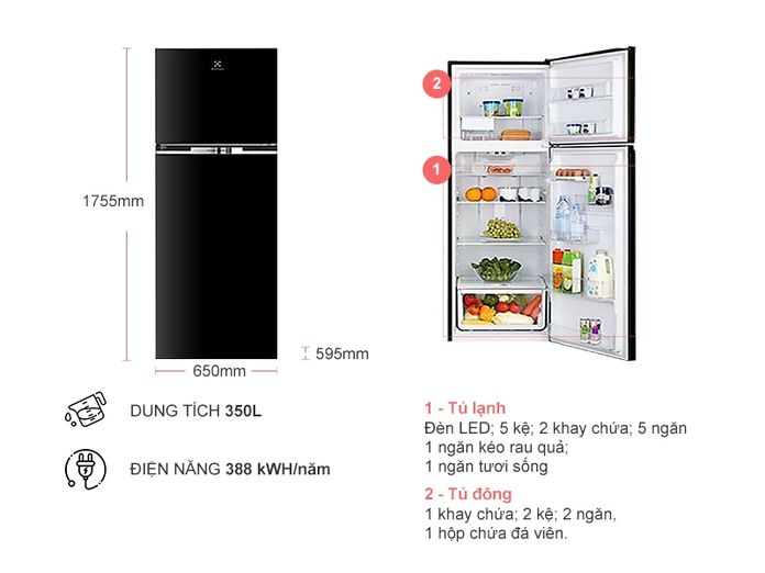 Tủ lạnh Electrolux 350 lít ETB3700H-H với thiết kế màu đen lịch lãm, tạo nên điểm nhấn cho không gian bếp nhà bạn. Không những vậy, ngăn lạnh với diện tích rộng cho bạn tích trữ nhiều thực phẩm hơn.