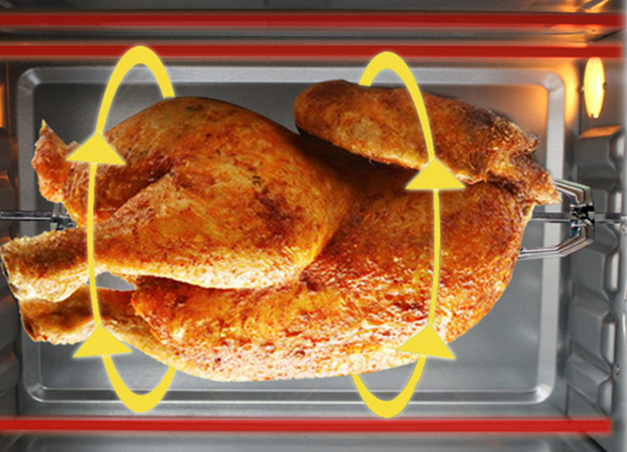 Lò nướng được kết hợp dàn nướng trên và dưới với 5 chức năng nướng đa dạng: nướng đối lưu, nướng kép, nướng xiên quay,... mang lại cho bạn những món ăn thơm ngon đúng điệu.