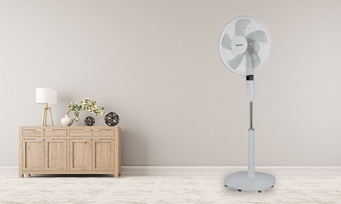 Quạt đứng Toshiba kết cấu thon gọn, chân đế lớn, giữ quạt đứng ổn định trên mọi mặt phẳng. Chiều cao quạt có thể thay đổi trong khoảng 113 - 133cm.