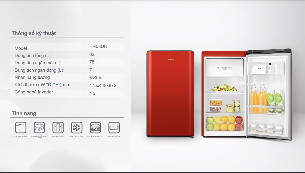 Tủ Lạnh Hisense 82 Lít HR08DR thiết kế nhỏ gọn, tiện dụng