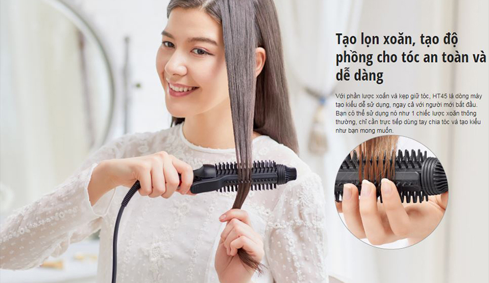 HT45 là dòng máy tạo kiểu dễ sử dụng. Bạn có thể dùng máy như chiếc lược xoăn thông thường.