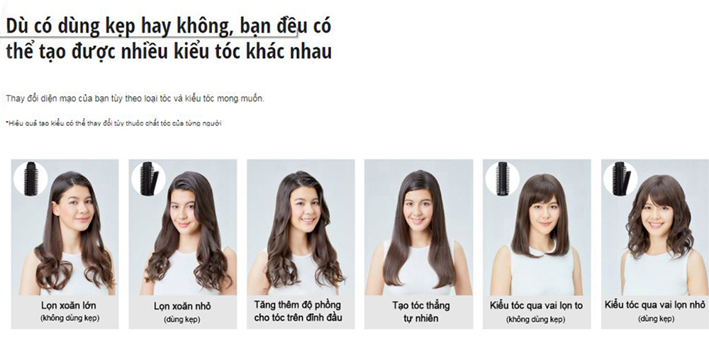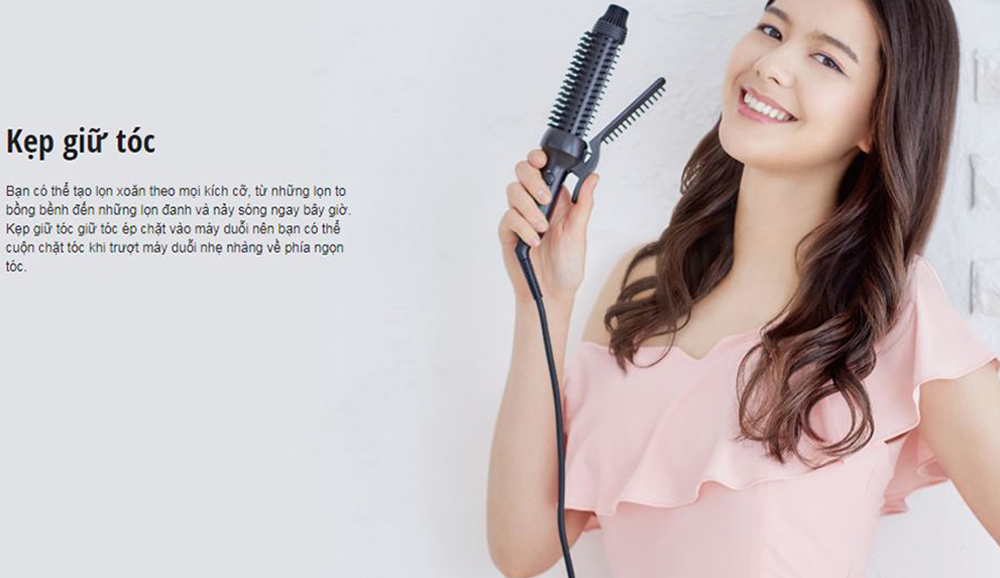 Máy giúp tạo được nhiều kích cỡ tóc xoăn: từ lọn to bồng bềnh đến những lọn sóng uốn lượn. Kẹp giữ tóc giúp bạn cuộn chặt tóc, dễ dàng tạo kiểu.